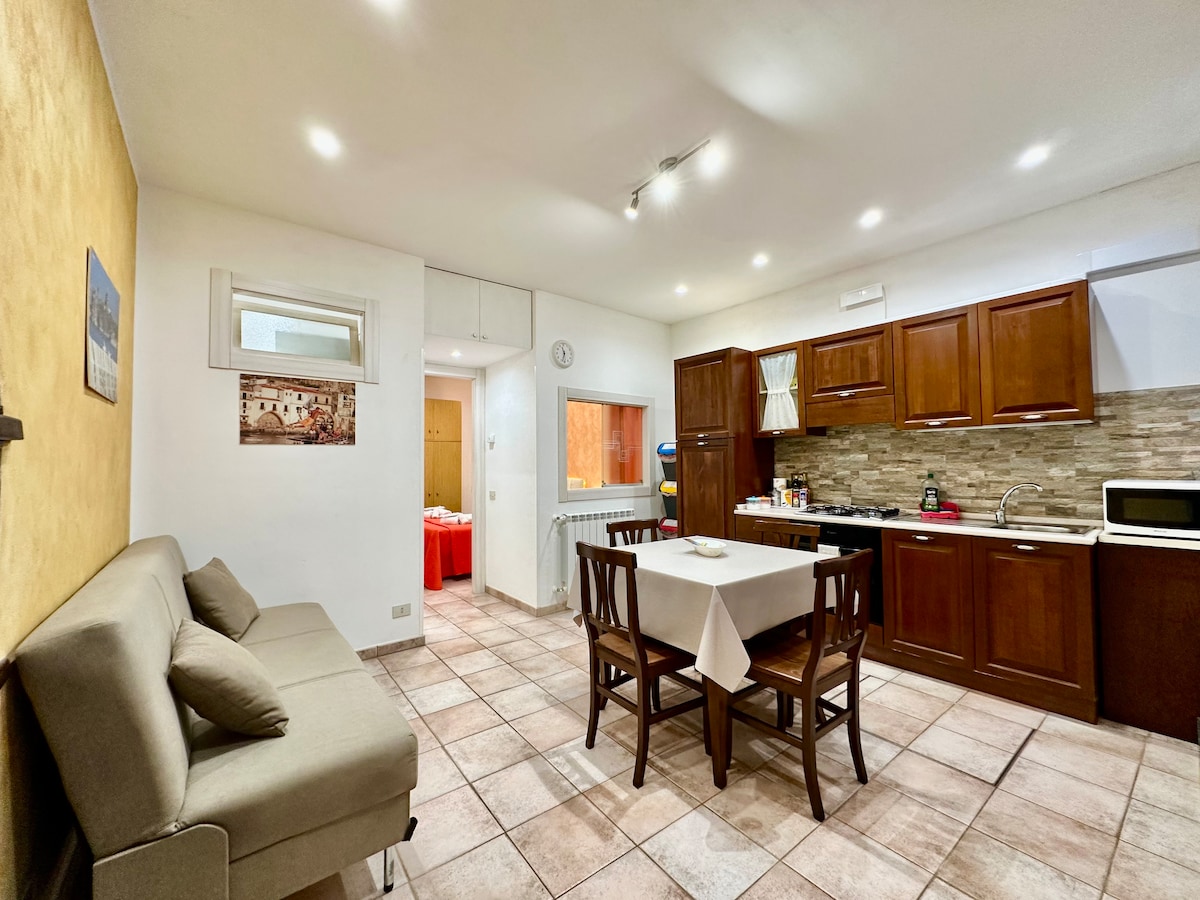 Casa indipendente nel bellissimo centro storico di Cefalu. Strada pedonale molto tranquilla vicinissima alla cattedrale ed alla spiaggia. Potete vivere la cittadina in piena libertà senza dover prendere mezzi di trasporto. Ingresso privato, bellissima vista mare con balcone. Casa completamente arredata con una camera da letto ( con letto Queen) ed un soggiorno con divano letto. Bagno con doccia.