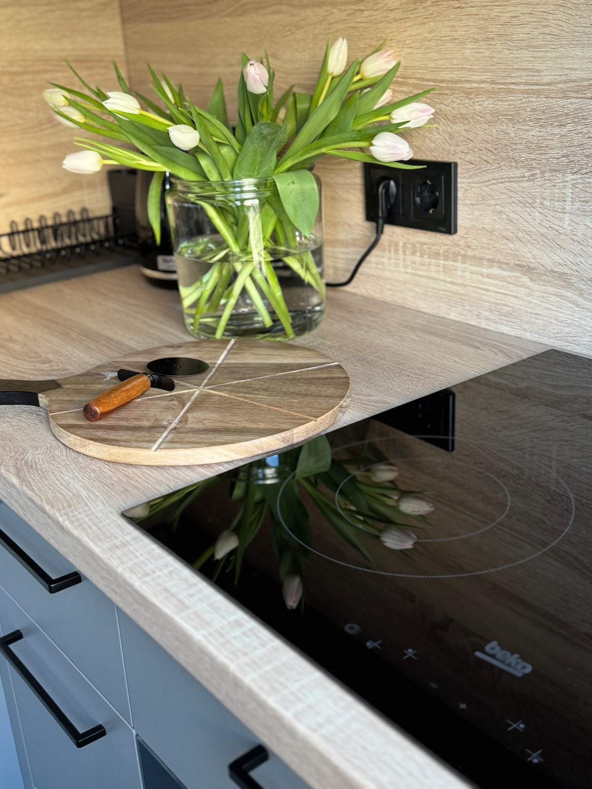 One-bedroom apartment with a functional layout, suitable for short or longer stays. The apartment includes: Bedroom with double bed and blackout curtains. Kitchen equipped with stove, oven, refrigerator, dishwasher, and a dining table by the window. Living area with essential furniture. Bathroom with shower, sink, and toilet. The apartment is in a quiet residential area with access to shops, public transport, and green spaces. Suitable for: Couples Solo travelers Business trips or remote work
