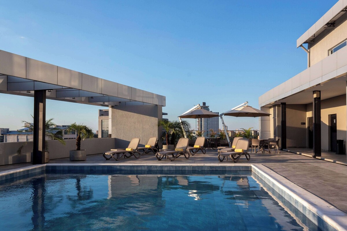 A modern, pet-friendly base in Asunción's city center, minutes from Silvio Pettirossi Airport via 24/7 shuttle. Start with a free buffet breakfast, relax at the outdoor pool and spa, and explore the Paraguay River promenade, Museo de las Memorias, and Shopping del Sol. Villa Morra's upscale dining scene is just a short trip away.