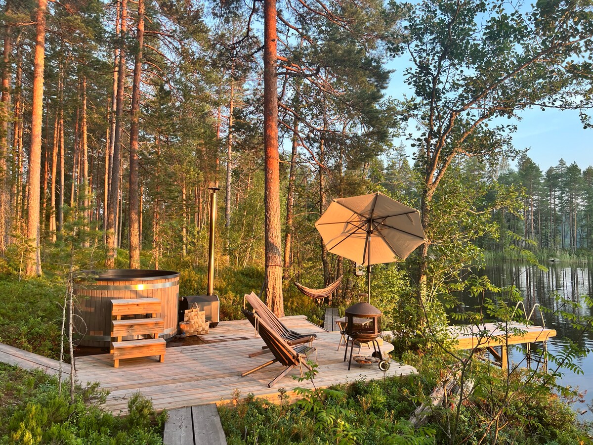 Mala i ambijentalna brvnara sa saunom na obali jezera sa bistrom vodom nudi divan beg od svakodnevice. U sklopu objekta se nalazi pješčana plaža i pristanište za plivanje. Imaćete i pristup sauni, čamcu na vesla i terasi na otvorenom za kuvanje i objedovanje. Brvnara sa saunom ima kamin, tako da možete da prenoćite čak i po hladnijem vremenu. Ima mesta za spavanje za četiri osobe, dva mesta za spavanje u potkrovlju i kauč na razvlačenje koji se može razvući u prizemlju. Iza sobe sa saunom se nalazi spoljni toalet. Moguće je punjenje električnog automobila tokom boravka po ceni od 0,35 e/kWh, tip 2