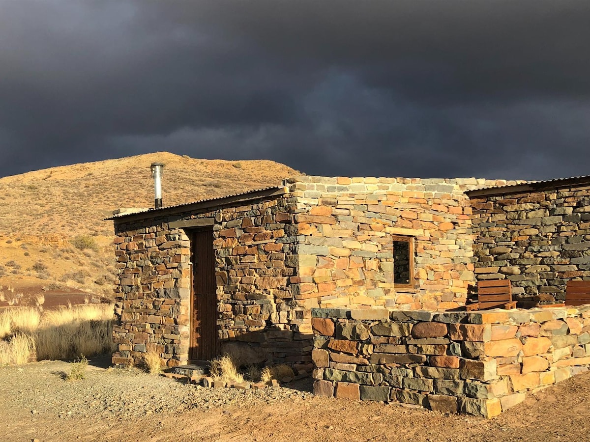 Ova velika planinska kuća ima 2 spavaće sobe, jednu po bračnom krevetu sa zasebnim kupatilom. Druga spavaća soba ima 2 kreveta. Planinska kuća može da spava 5 osoba koristeći kauč u salonu porodične veličine. Tu je dobro opremljena kuhinja, drugo kupatilo sa tušem i velika terasa sa izuzetnim pogledom. Tu je takođe braai na terasi. Nedavni dodatak je privatna kada na drva u grmlju u blizini planinske kuće. Savršeno za posmatranje zvezda uz čašu vina. Mi smo kućni ljubimci.