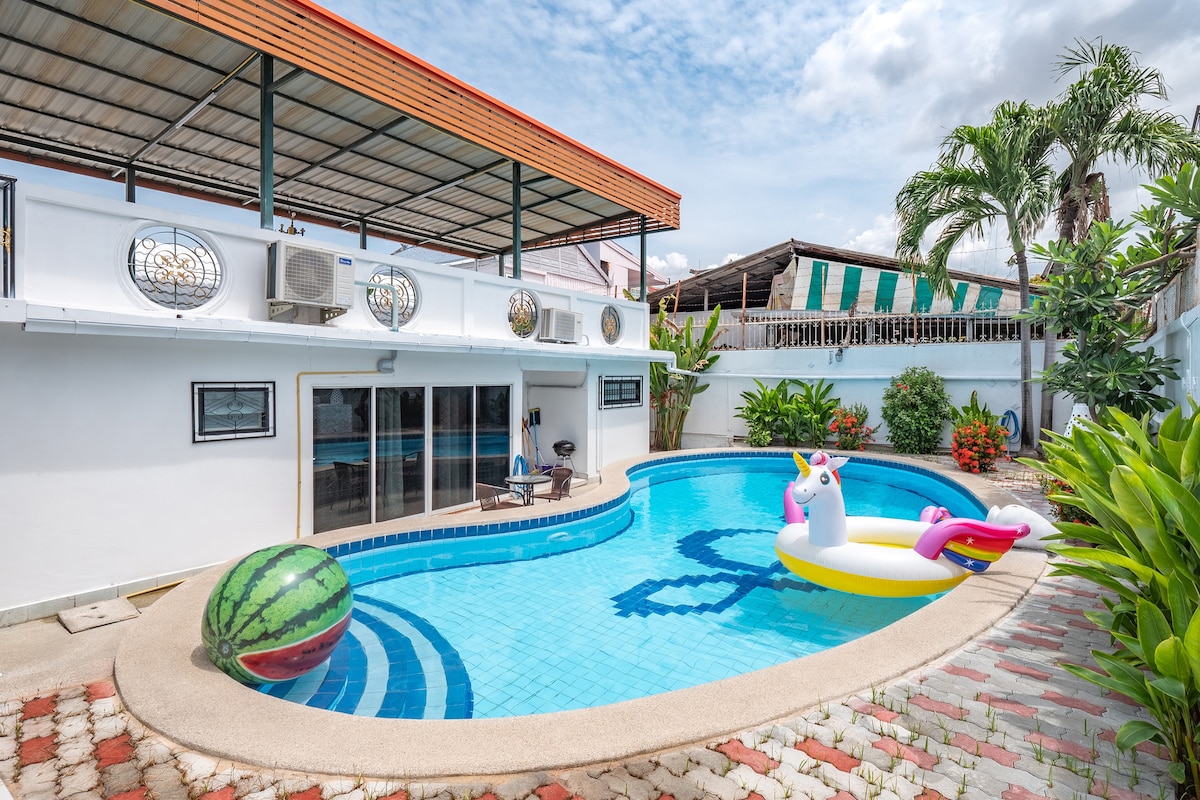 Pattaya 4BR Pool Villa-Grp BBQ, Karaoke&Pool Table