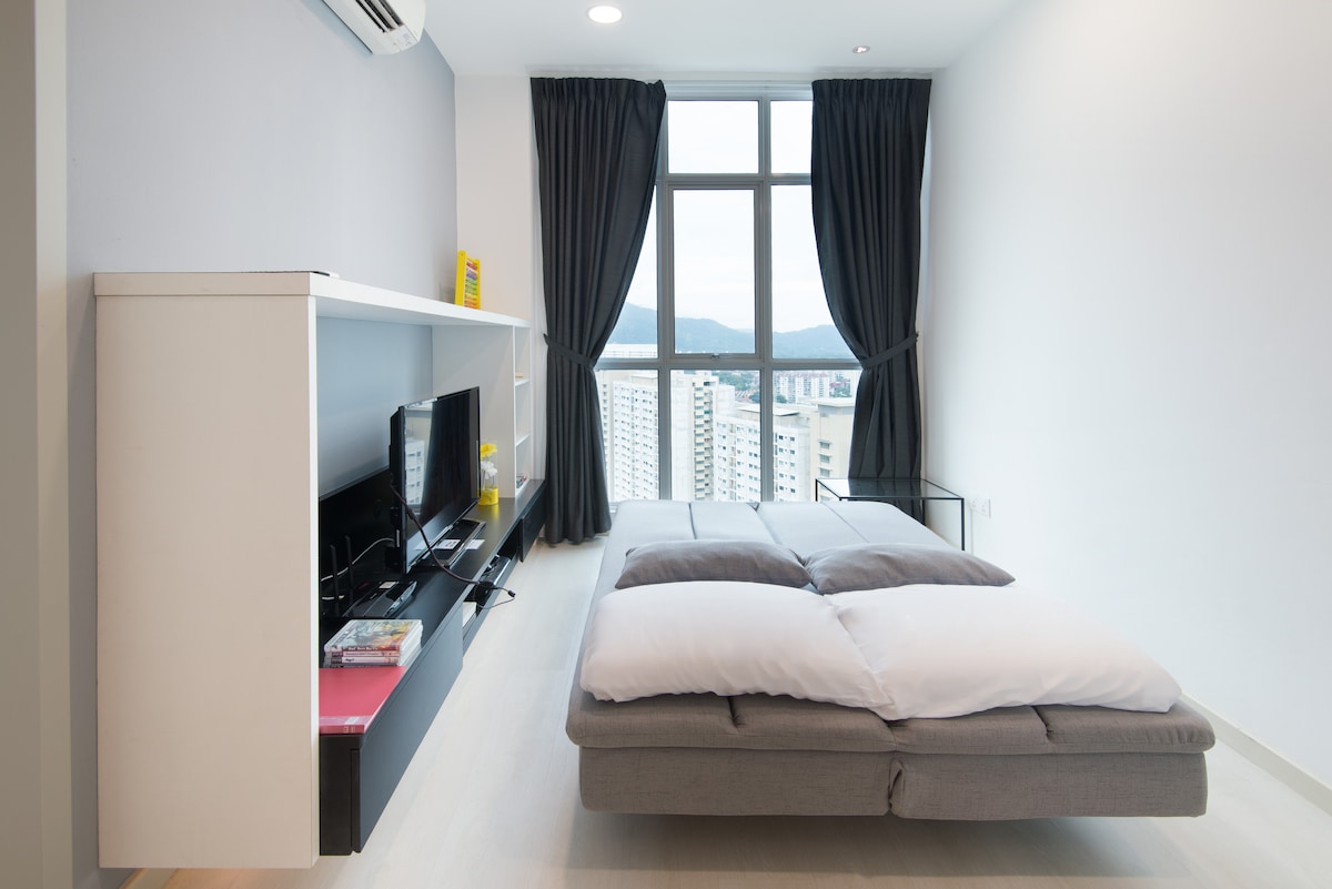 Our brand new cosy suite is perfectly located in the heart of Penang with easy access to local tourist attractions. Japanese/Korean Restaurants & 7-11 convenience store are right below our home! Local food, KFC & Pizza Hut is within 5 mins walk! We Provide • Great hospitality services • Sunrise & City View • PS3 Entertainment & Netflix • 1 Private car park • 100 Mbps WiFi • Infinity Pool View • Fully air-conditioned If you like a quiet & cosy place in this busy city, Don't Wait, Book Now!!!