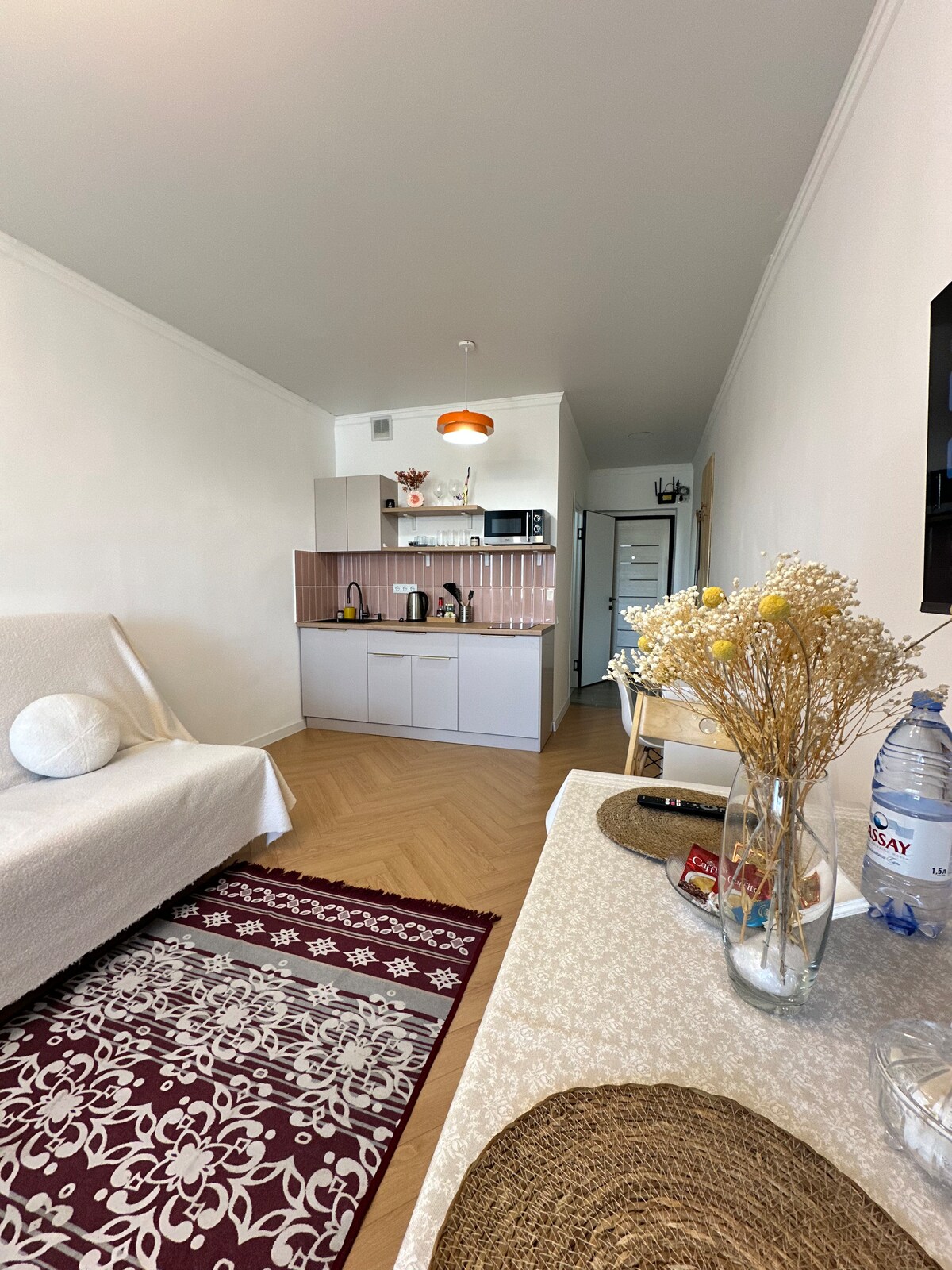 Просторные светлые апартаменты в центре города с 2 санузлами, в 1 санузле - ванна, во 2 санузле - душевая кабина. Квартира-студия. Кондиционеры во всех комнатах. Интернет. Центральное отопление. Апартаменты находятся в тихом зеленом месте в центре города. Рядом есть станции метро, автобусные и троллейбусные остановки, большой Молл Forum, цирк, развлекательный парк аттракционов Айя, площадь Республики.