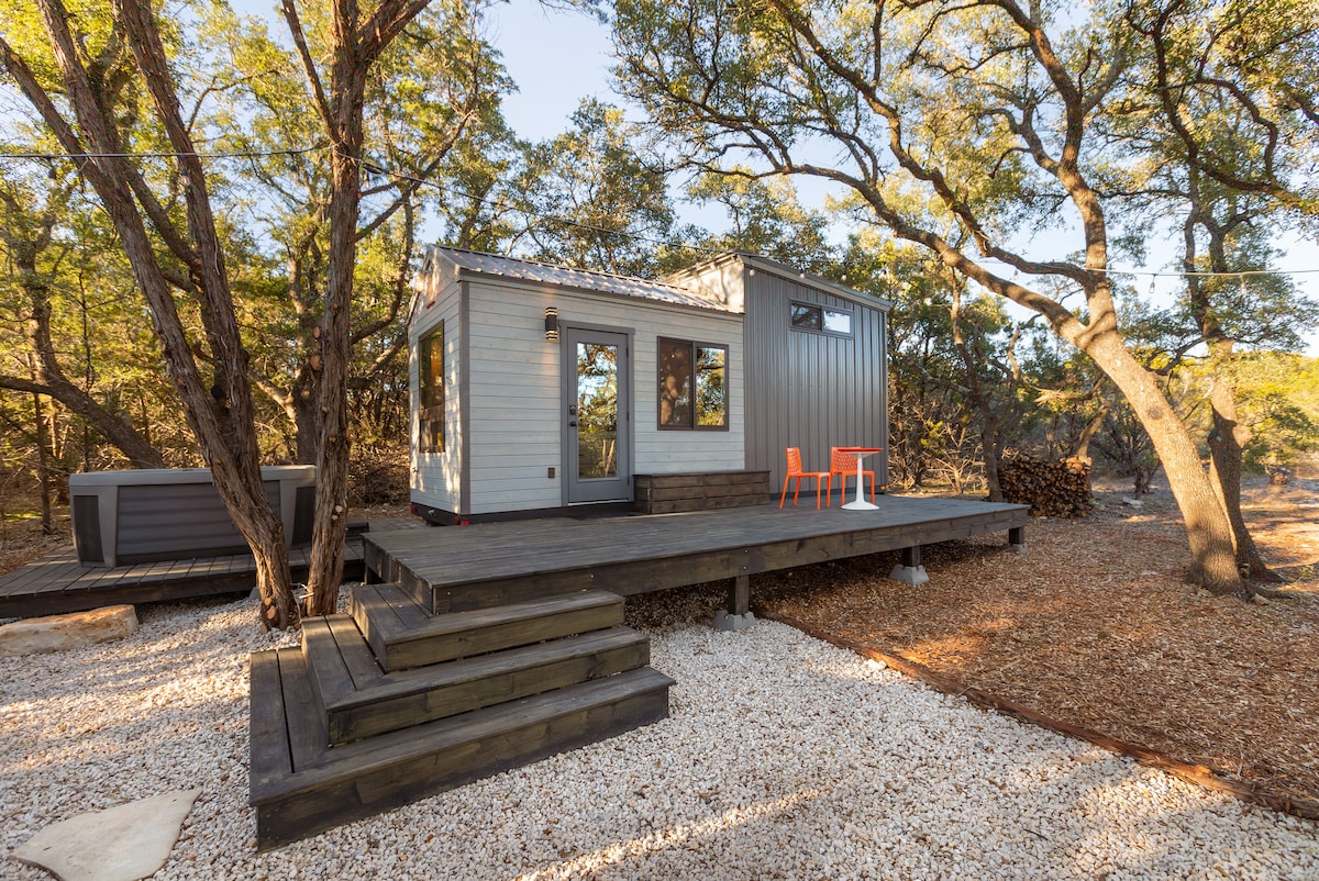 Just outside of Austin lies the charming little village of Wimberley, TX and the cutest tiny home retreat you ever did see. Wimberley embodies the beauty of the Texas Hill Country with gorgeous scenery, spring-fed swimming holes, unique shops, lovely restaurants and many wineries, breweries and distilleries. Our stylish tiny home sits right at the edge of town on 3 private, wooded acres. We call her La Petite and we think she takes glamping to a whole new level!