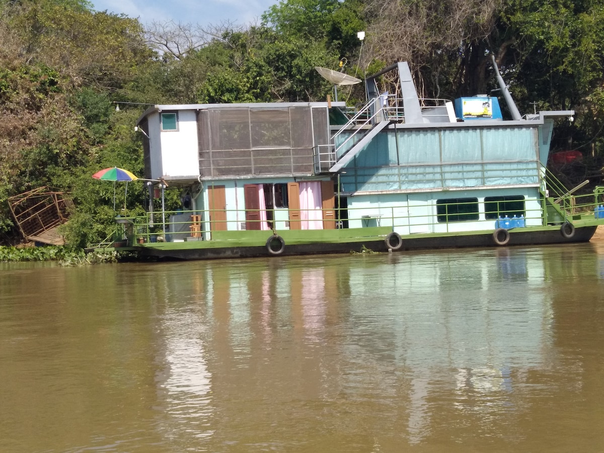 Reconecte-se à natureza neste lugar inesquecível. Nosso barco esta ancorado no rio Cuiabá no coração do Pantanal, e também nossa casa, somos uma casa apaixonados pela natureza e preservação do pantanal, recebermos em nossa casa para que você possa contemplar as belezas da vida no pantanal com sua fauna e flora. Venha conhecer como viver em harmonia com a natureza.