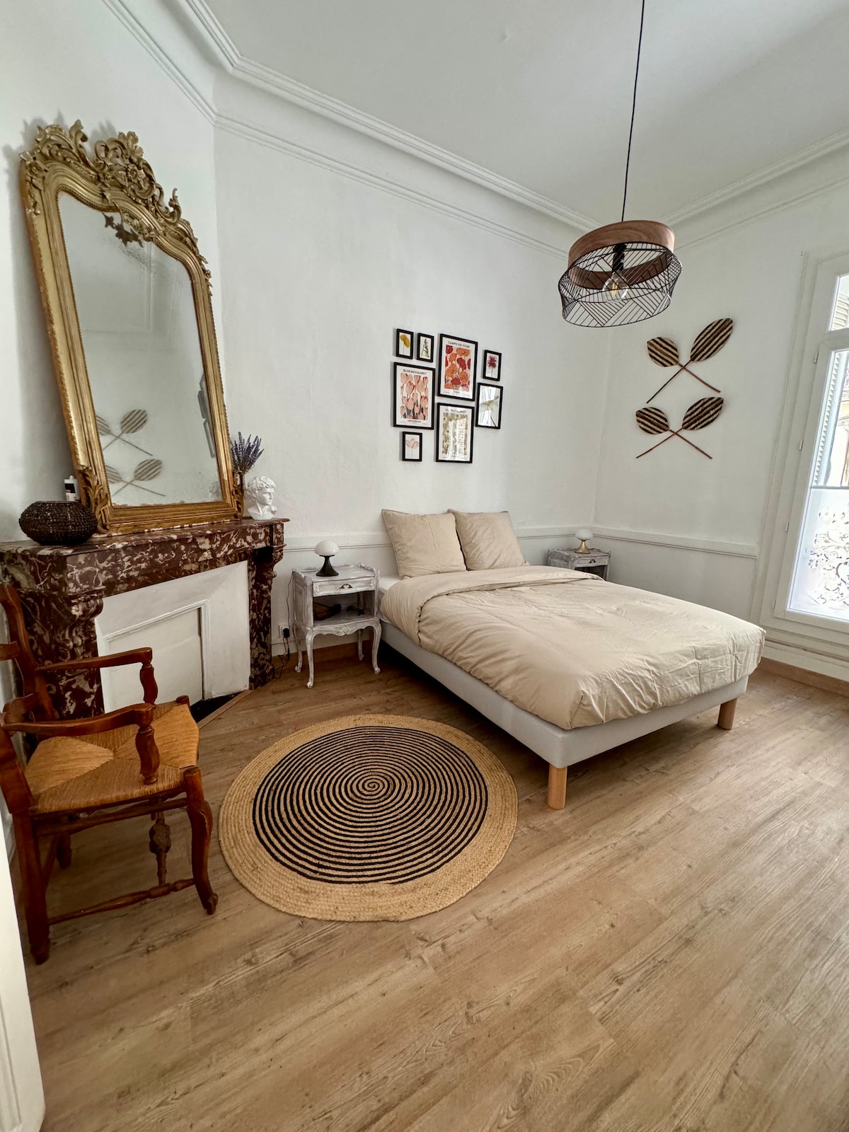 Profitez d'un logement élégant et central ♡ Idéalement situé dans l’hyper centre à proximité de nombreux restaurants et de places conviviales. Elégant, lumineux et rénové par une architecte d’intérieur. Cet appartement offre une belle pièce de vie, une cuisine équipée, une chambre avec un lit haut de gamme en 160X200, une salle d'eau attenante et un WC séparé. Situé à 4 arrêts en tramway de la gare Saint-Roch, à 9 minutes à pied de la place de la Comédie et proche du parking de la Préfecture.