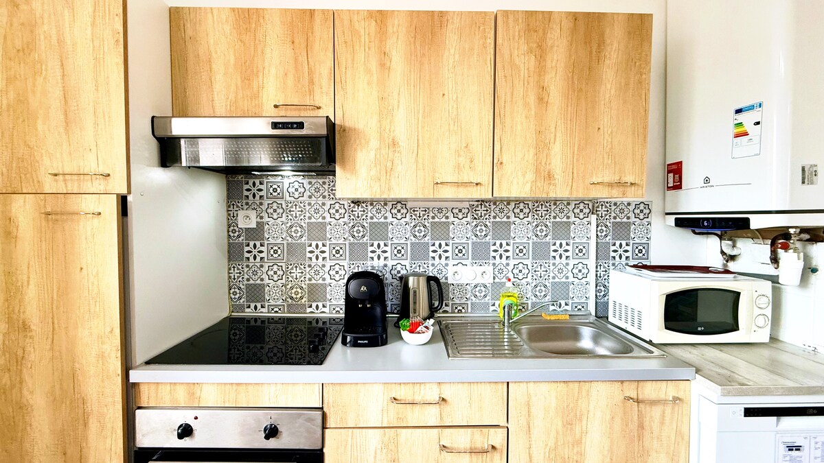 🏡 Appartement neuf centre-ville avec terrasse & garage privé Séjournez dans un appartement refait à neuf, situé en plein centre-ville, dans un immeuble sécurisé avec garage. ✨ À votre disposition : 🛏️ Chambre avec lit king size, linge fourni 🛁 Salle de bain moderne + WC japonais 📺 TV XXL 🍽️ Cuisine équipée 🌇 Terrasse privée 🚋 Tram à 2 min Confort, style et emplacement idéal. Parfait pour un séjour urbain ou pro. Réservez vite !