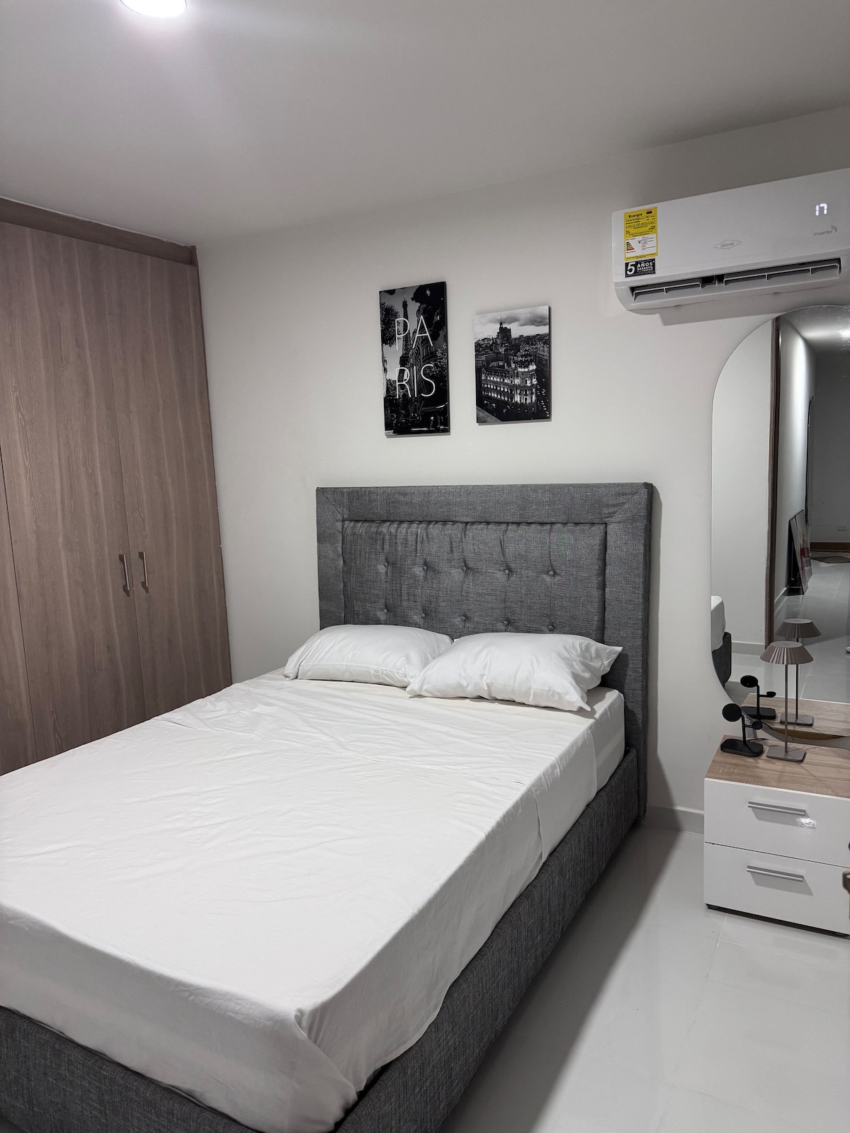 Udoban i prelep stan sa 2 spavaće sobe, svaka sa garderobom, privatnim kupatilom i AA. Glavna soba sa bračnim krevetom (još jedan bračni krevet ispod) i sporedna soba sa dva kreveta (još dva kreveta ispod). Potpuno opremljena kuhinja. Dnevni boravak i studio sa AA. Brzi Wi-Fi i kablovski signal 3 Smart TV. Zgrada sa bazenom i teretanom. Bezbjedno područje. Imajte na umu da morate da pošaljete dokumentaciju prije prijave (kolumbijski zakoni).