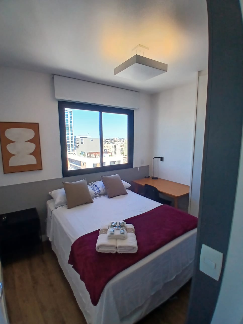 Moderna garsonjera, u centru grada – idealna za one koji traže udobnost, praktičnost i odličnu lokaciju u Kurtibi. Klimatizovano okruženje, opremljena kuhinja i pametni TV – savršeno za odmor ili rad. 🛏️ Može udobno da ugosti do 4 osobe, kvalitetna posteljina. • Grijani bazen • Teretana • Sauna • Terasa • Veš (plaća se) 🚗 Parking je dostupan u zgradi, 35 R$ po noćenju Plaćanje putem PIX-a domaćinu.