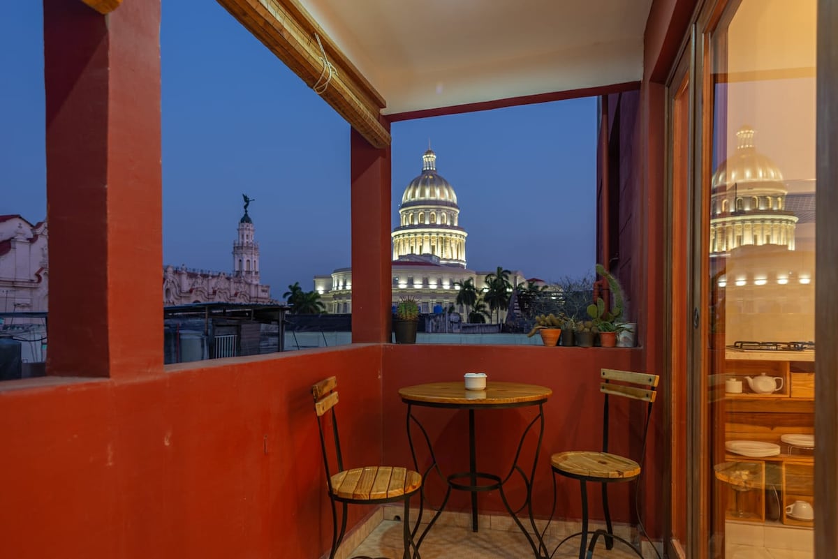 Vrhunski stan u kolonijalnom stilu, sa balkonom i krovom. Smješten u istorijskom centru Havane, usred kubanskog života u stambenom području, smeštaj je udaljen samo jedan korak od Kapitola (možete ga videti iz stana!), 5 minuta od glavnih spomenika, barova i restorana Habana Vieja. Daiana će vas dočekati sa osmehom. Daiana poznaje Havanu napamet i pružiće sve dobre savjete. Ona je Kubanka i govori engleski i francuski. Pružamo vam 4G simulator tokom boravka