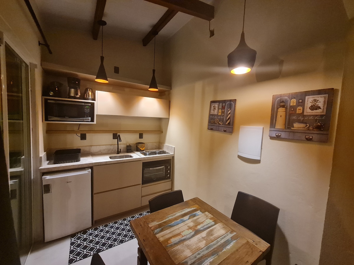 Potkrovlje - Garopaba Bič: Ovo potkrovlje ima kuhinju, spavaću sobu i kupatilo – sve na jednom mjestu - savršeno za parove ili prijatelje koji žele da posjete Garopabu. Potkrovlje je udaljeno 200 metara od centralne plaže Garopaba, sve možete da uradite peške, neverovatno mesto. Potkrovlje se nalazi u porodičnom delu grada i ima mnogo prirode u okolini. Pogled na okean, mirno i tiho mjesto, idealno za one koji traže mir i tišinu. Ima parking.