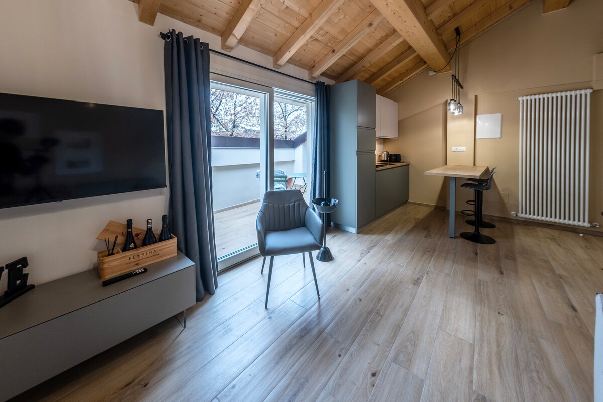 The accommodation with independent access from the garden, used by guests for outdoor breakfasts, consists of 2 rooms: the living area for preparing breakfast (no cooker) equipped with: fridge, electric oven, coffee machine, kettle, milk warmer, table and sofa; the large double bedroom (16 sqm) with exclusive bathroom. The sofa converts into a comfortable double bed in case of more guests. ATTENTION! NO kitchen, washing machine and TV, not suitable for long stays Possibility of outdoor parking.