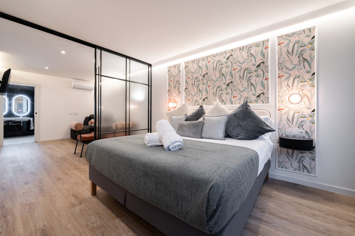 SB20 Boutique Studios, pored Gran Vía madrileña: luksuzni apartmani na otvorenom i veoma svetli, sa autorskim dizajnom. Uživajte u bračnom krevetu, dušeku sa memorijom, pojedinačnoj klimatizaciji i đakuziju. Opremljena kuhinja, pametni TV i automatska prijava za prijavu bez čekanja. Vrhunska udobnost i nenadmašna lokacija u Madridu.