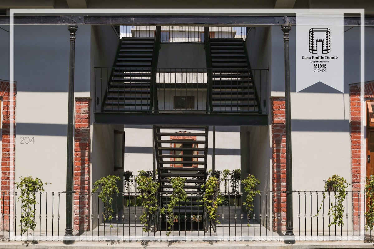 Šarmantno potkrovlje u srcu Meksiko Sitija, koje se nalazi na trećem spratu istorijske zgrade. Dočekuje vas udoban dnevni boravak sa sofom i TV-om. Trpezariju sa stolom i četiri stolice. Potpuno opremljena kuhinja sa roštiljem, sudoperom, frižiderom i mikrotalasnom rernom. Glavna spavaća soba sa bračnim krevetom, klima-uređajem i kupatilom. U sredini se nalaze stepenice od kovanog gvožđa koje vode do prostrane terase sa panoramskim pogledom na grad, uključujući simboličnu Tore Latinoamerikanu.