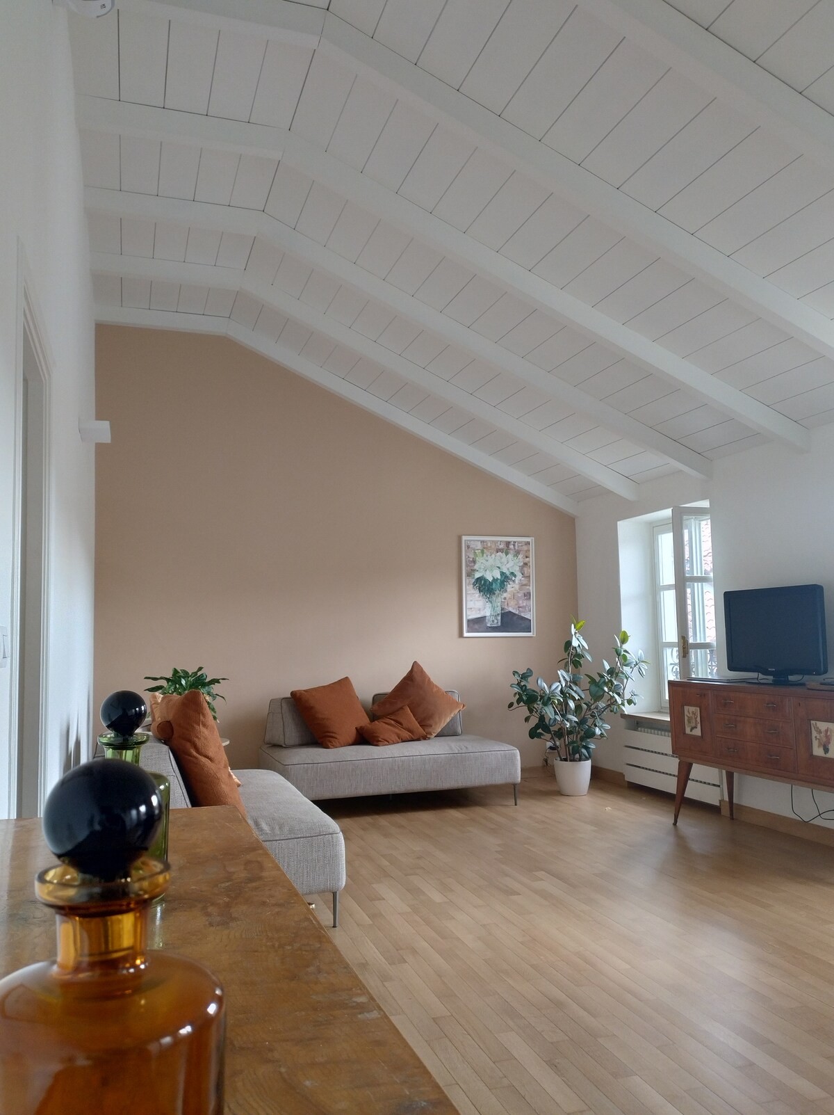 Odsjednite u srcu grada u elegantnom stanu sa velikim prostorima opremljenim udobnošću i opuštanjem. Svetla dnevna soba, podeljena u tri dela, odvojena je od noći ukrašenim prozorom koji sadrži kolekciju drevnih porcelana. Različiti dnevni boravci su podijeljeni u opušteni TV , veliku trpezariju i opremljenu kuhinju: ovdje se nalaze dva kauča na razvlačenje. Jedna od dve spavaće sobe sa bračnim krevetom takođe se može pretvoriti u sobu sa krevetom za jednu osobu.