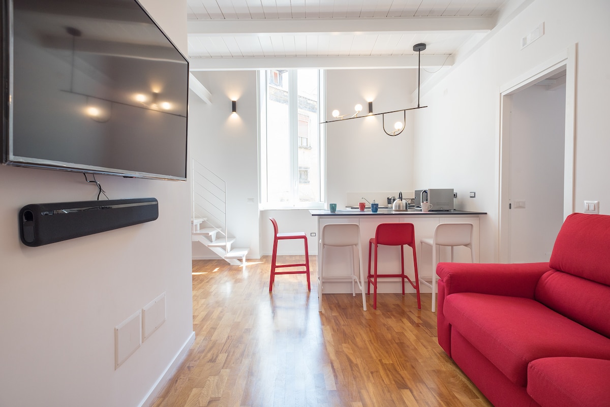 Luksuzan apartman savremenog dizajna, savršena sinteza modernosti i tradicije. Smešten u ulici Tribunali, u živopisnom srcu istorijskog centra Napulja, idealan je dom za regenerišući boravak i jedinstveno iskustvo. Soba, sa izloženim gredama i svetlim bojama, ima ekskluzivne detalje dizajna. Dizajniran je da podigne vaše emocionalno stanje, otvarajući vas da otkrijete čuda ovog grada