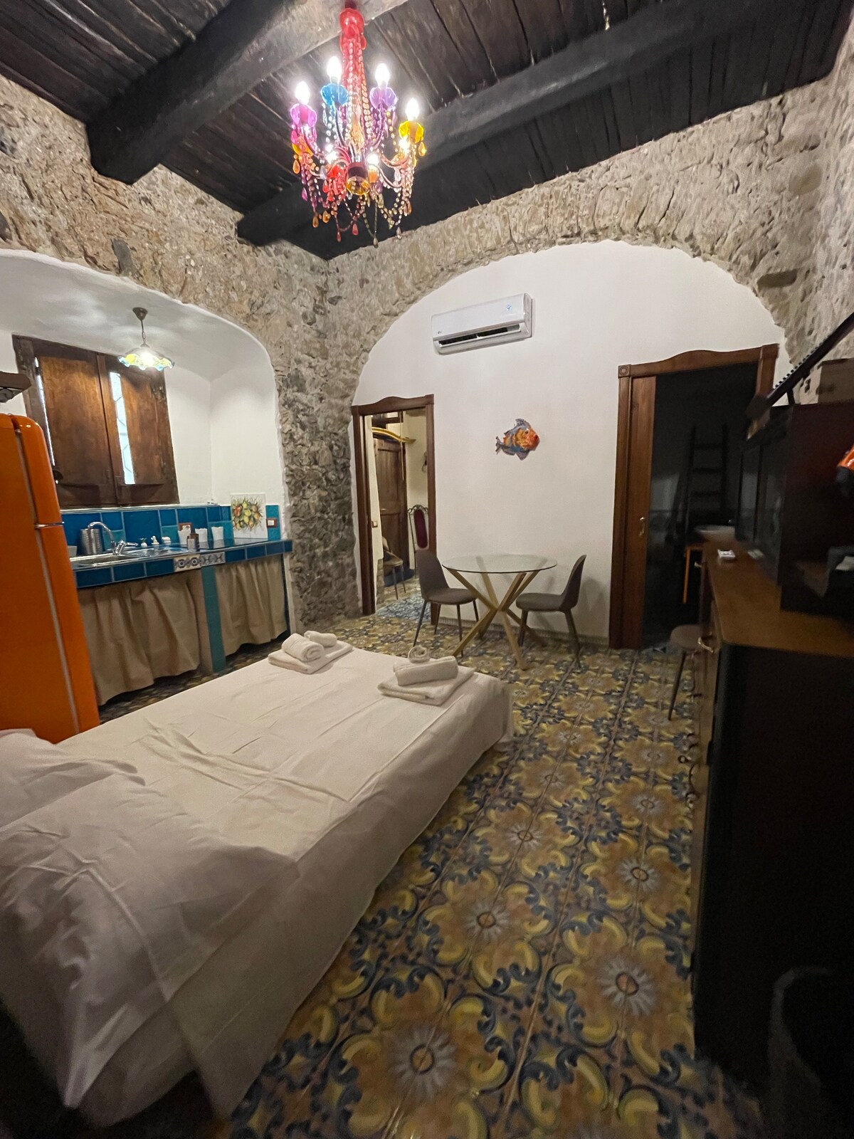 Veoma svetli studio apartman sa nezavisnim ulazom i balkonom za ekskluzivnu upotrebu koji se nalazi na trećem spratu u istorijskom centru Salerna sa pogledom na Via Dei Mercanti nekoliko metara od glavnih usluga i atrakcija. Novorenovirani smeštaj koji se sastoji od spavaće sobe i kupatila, sve za ekskluzivnu upotrebu. Idealno za oba vikenda i duge praznike. Dodatne usluge uz naknadu: pranje veša, parking, dnevno čišćenje, promena posteljine, usluga prevoza do/od stanice/aerodroma.