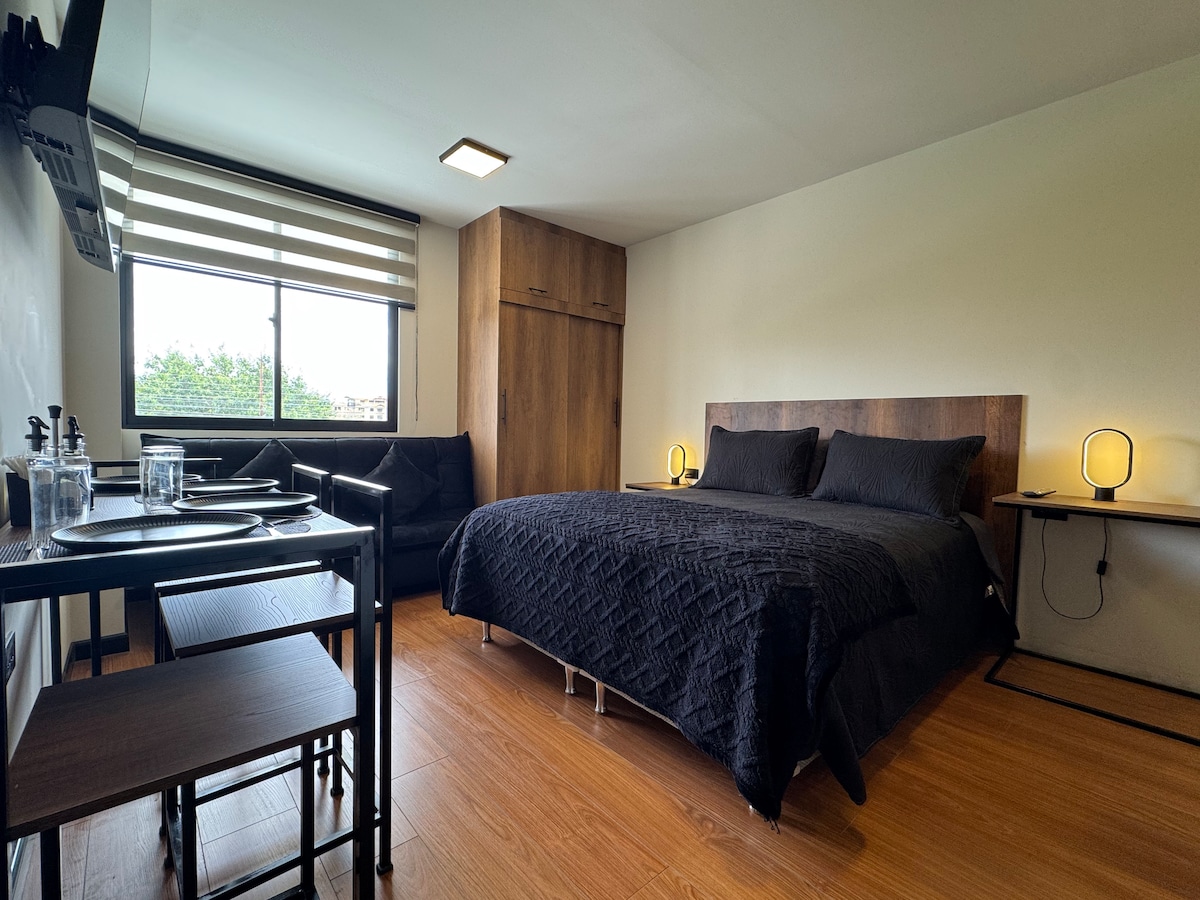 Opustite se u ovom mirnom i elegantnom prostoru. Ekskluzivan prostor u zgradi, idealan za vas ako putujete sami ili u pratnji posla, posla ili odmora. Stan ima lift, parking, Wi-Fi, Netflix. Namješten je i opremljen svime što je potrebno za prijatan boravak od 2 osobe. Nalazi se osam minuta od centra Cochabamba ili Quillacollo. Prostor nije pogodan za kuvanje ili pušenje. Za boravke duže od 5 dana čišćenje se vrši uz doplatu.