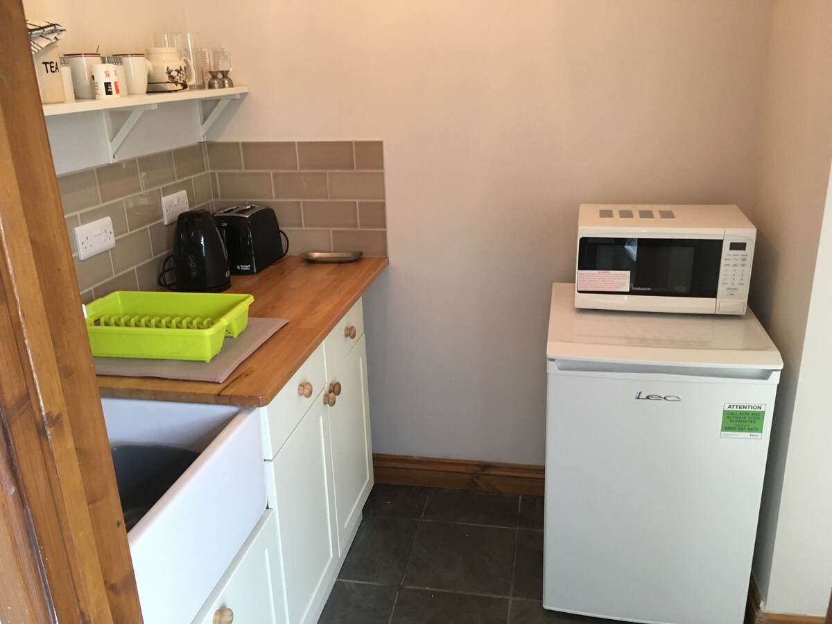 Gosti mogu da uživaju u sunčanoj spavaćoj sobi sa dva odvojena kreveta, kuhinjskom prostoru za samostalno snabdijevanje (žitarice za doručak, pribor za čaj i kafu) sa mikrotalasnom rernom, pločom za kuvanje, fritezom na naduvavanje, frižiderom i sudoperom. Trpezarija na otvorenom je opcija u privatnom dvorištu sa spoljnim stolom i stolicama, a na zahtev je dostupan i dovoljno prostora za bicikle ili kajake itd. Postoji off-road parking za 2 vozila. Parking je dostupan na zahtev.