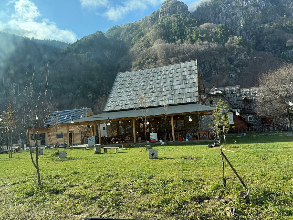 Seoska kuća u srcu Prokletijea, okružena livadama i šumama. Odmorite se u našim seoskim kućama s kojih se pruža nevjerovatan pogled na Gusinje i vrhove surovog Prokletija! U našim seoskim kućama imate sve što vam je potrebno za savršen odmor za vas i vašu porodicu. Seoske kuće imaju prekrasan dnevni boravak, kupatilo, dvije prelijepe spavaće sobe, kao i dvije terase s kojih se pruža veličanstven pogled. Dođite i osjetite pravi duh kulture Prokletije i Gusinje!