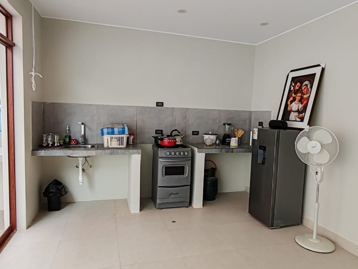 Dobro došli u „La Casa de Lucero”! Uživajte u udobnom i opuštajućem boravku u ovoj opremljenoj kući. 📍Smešten u stambenom naselju Santa Maria, privatnom i bezbednom području, stambeno područje je udaljeno 4 bloka od trga Armas de Kamanja. 🌴Naša kuća kombinuje udobnost, privatnost i kontakt sa prirodom, jer se nalazi pored ruralnog okruženja. Idealna je za porodice i grupe prijatelja.