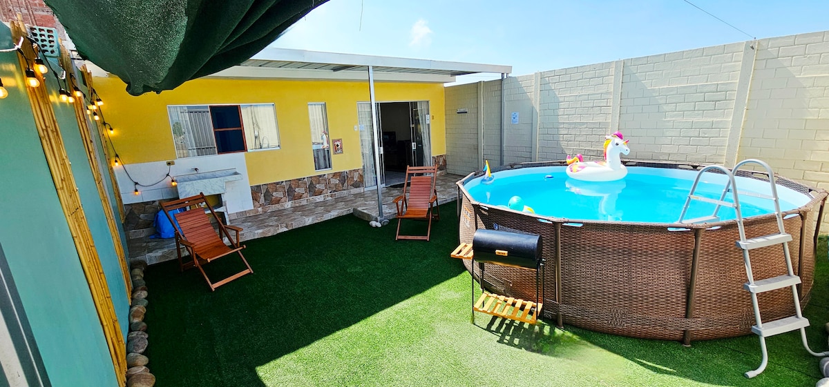 Disfruta de una estadía cómoda y relajante en nuestra casa-departamento familiar, ubicado a tan solo dos cuadras de la playa, ideal para caminar y disfrutar del mar sin necesidad de usar vehículo. El alojamiento cuenta con piscina de uso exclusivo, perfecta para descansar o para que los niños disfruten siempre bajo supervisión. Sus ambientes son amplios, iluminados y bien ventilados, pensados para brindar comodidad, privacidad. Será un gusto recibirte🩵 🩵