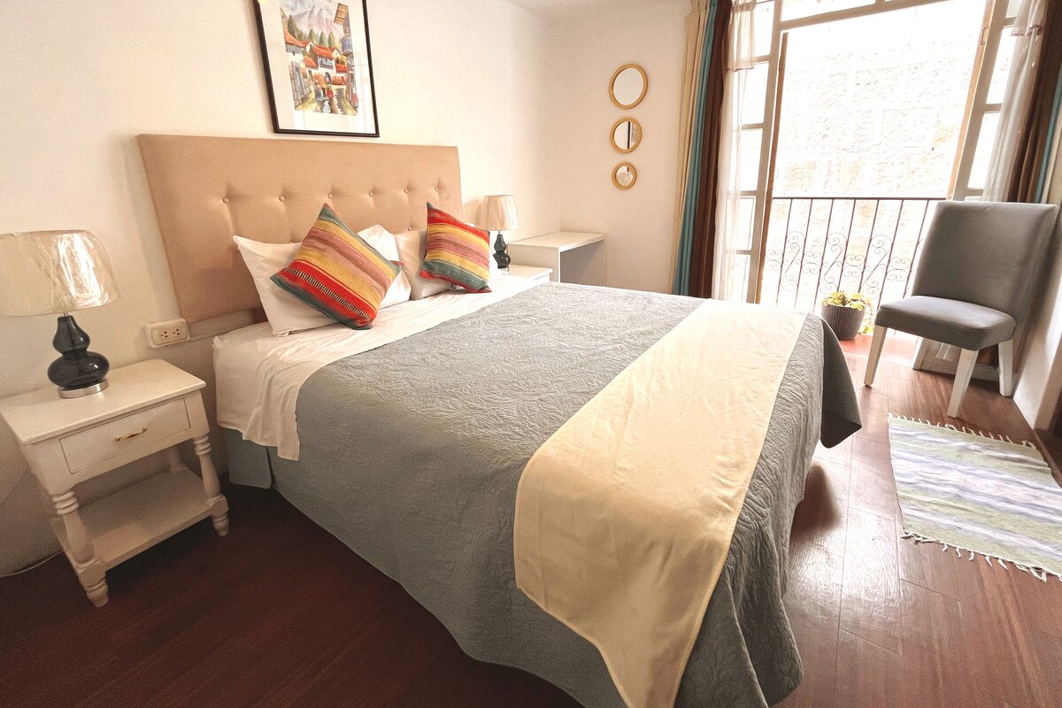 Ovaj elegantni apartman nalazi se samo 4 bloka od trga Plaza de Armas i istorijskog centra. Soba je opremljena visokokvalitetnim čaršafima, peškirima i drugim predmetima. Nalazi se na 3. spratu objekta. Sa terase se vidi panoramski pogled na okolne vulkane u gradu. Četvrt je okružena poznatim hotelima i najvećim javnim parkom u gradu.