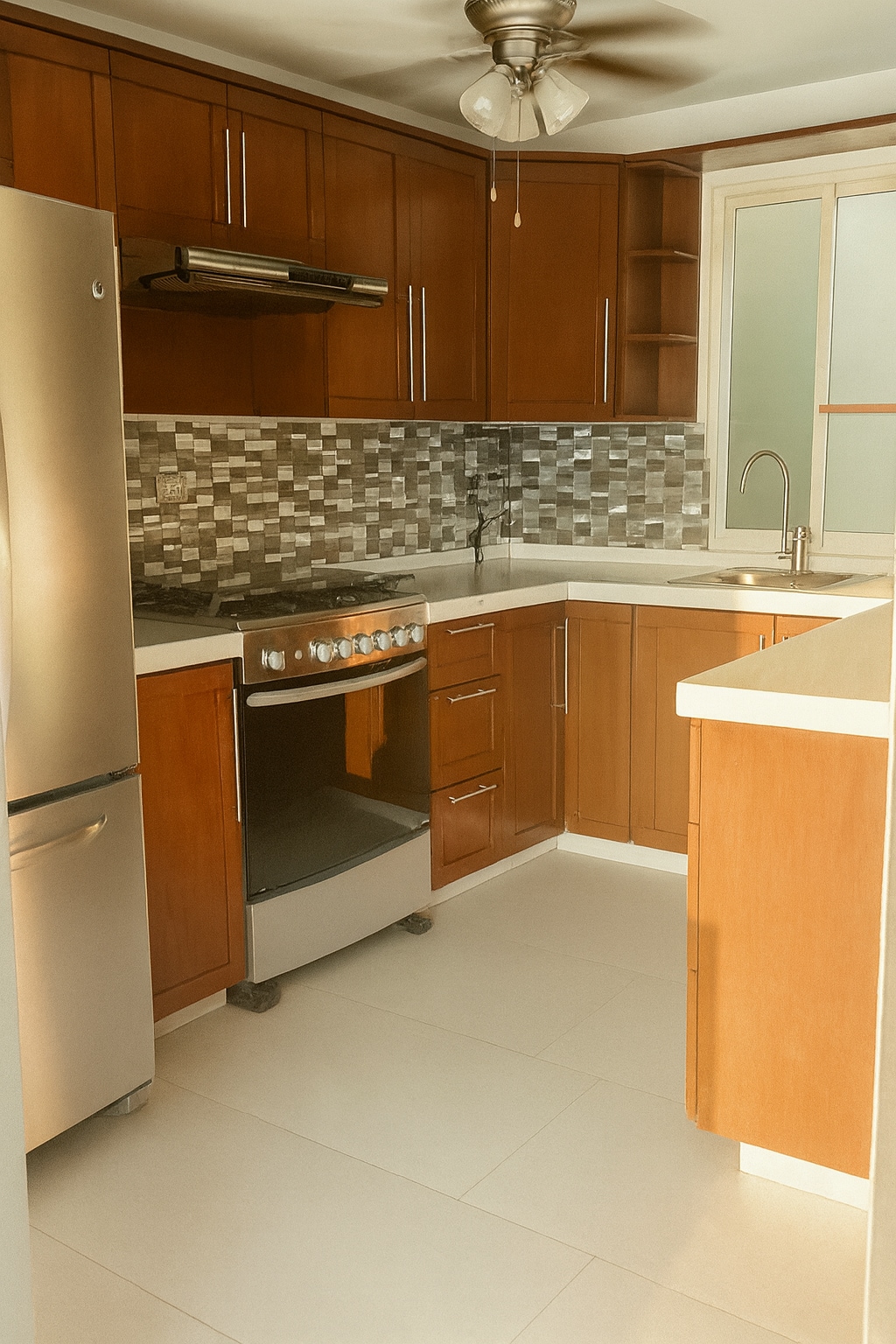 Two bedrooms, 2 beds: 1 King-size bed and 1 doble bed bed. 3 Smart TVs, 1 bathroom. Desk, vanity and closet. Fully equipped kitchen: Coffee maker, blender and kitchen utensils (plates, glasses, pans, etc.). Parking space for 1 car. Paid parking available in the building. Pool, gym and paid laundry facilities. Panoramic views, comfort and relaxation. (No parties allowed in the amenities or inside the apartment.)