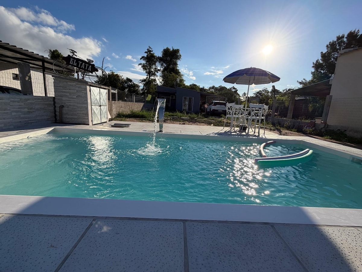 Udobna i prostrana kuća u Lago Merin Cerro Largo, jedan blok od opštinskog kampa. Isto ima kuhinju, trpezariju, kupatilo, tri spavaće sobe od po dva kreveta, roštilj sa frižiderom, spoljni bazen i zelenu površinu. Nema Wi-Fi, ali ima DirecTV. Bazen nije grejan