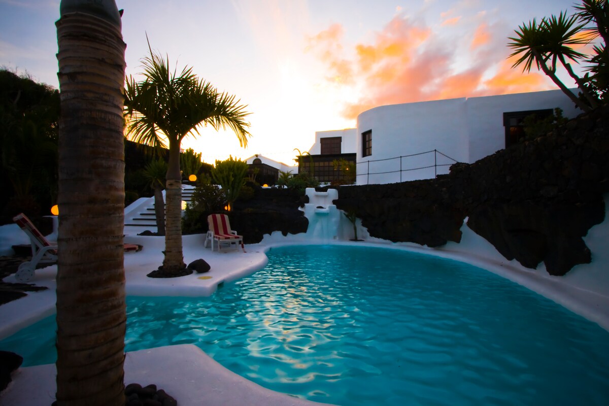 The Pond House is perfect for lovers of beauty and calm. Bungalov u mirnom kompleksu na pet minuta od mora sa malim privatnim i grijanim bazenom, za ekskluzivnu upotrebu mojih gostiju, privatnom baštom i parkingom u sklopu kompleksa i klima-uređaja. Ima veliki zajednički bazen i direktan pristup aveniji i plažama Dizajnirali su umjetnici Lanzarotea sa svakim luksuzom detalja za jedinstven odmor okružen umjetnošću u svakoj od soba. Samo za odrasle