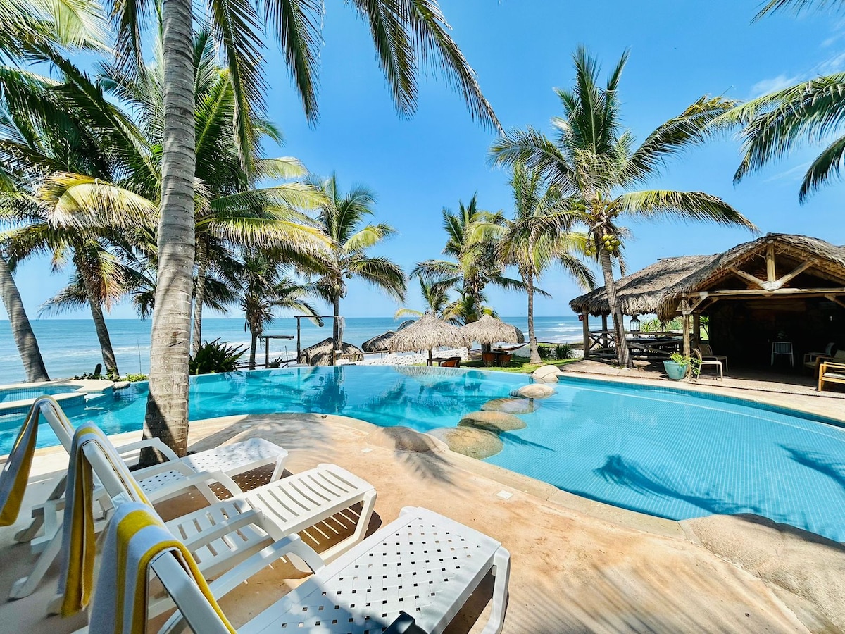 Estamos ubicados frente al mar en la playa Celestino Gazca, un lugar aislado con marisco fresco, espectaculares atardeceres y cercanía con la naturaleza. La playa es un santuario de turtugas marinas, el cual promueve el turismo responsable y sostenible para la protección del medio ambiente. Tenemos una palapa con hamacas, bar, muebles de exteriores, y una piscina con agua de mar- completamente natural, mejor para la salud de adultos y niños.