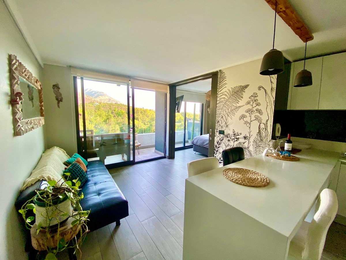 Ovaj šarmantni studio apartman je savršeno mjesto za vaš sljedeći boravak u Santjagu, u blizini klinika, univerziteta, vrhunskih gradskih tržnih centara i skijaških centara. Stan ima sve što vam je potrebno da vam boravak bude udoban, klima-uređaj, opremljenu kuhinju, TV, Wi-Fi, terasu i parking. Zgrada ima teretanu, spoljni bazen i vešeraj. Opustite se u ovom mirnom i promišljenom prostoru za odmor.