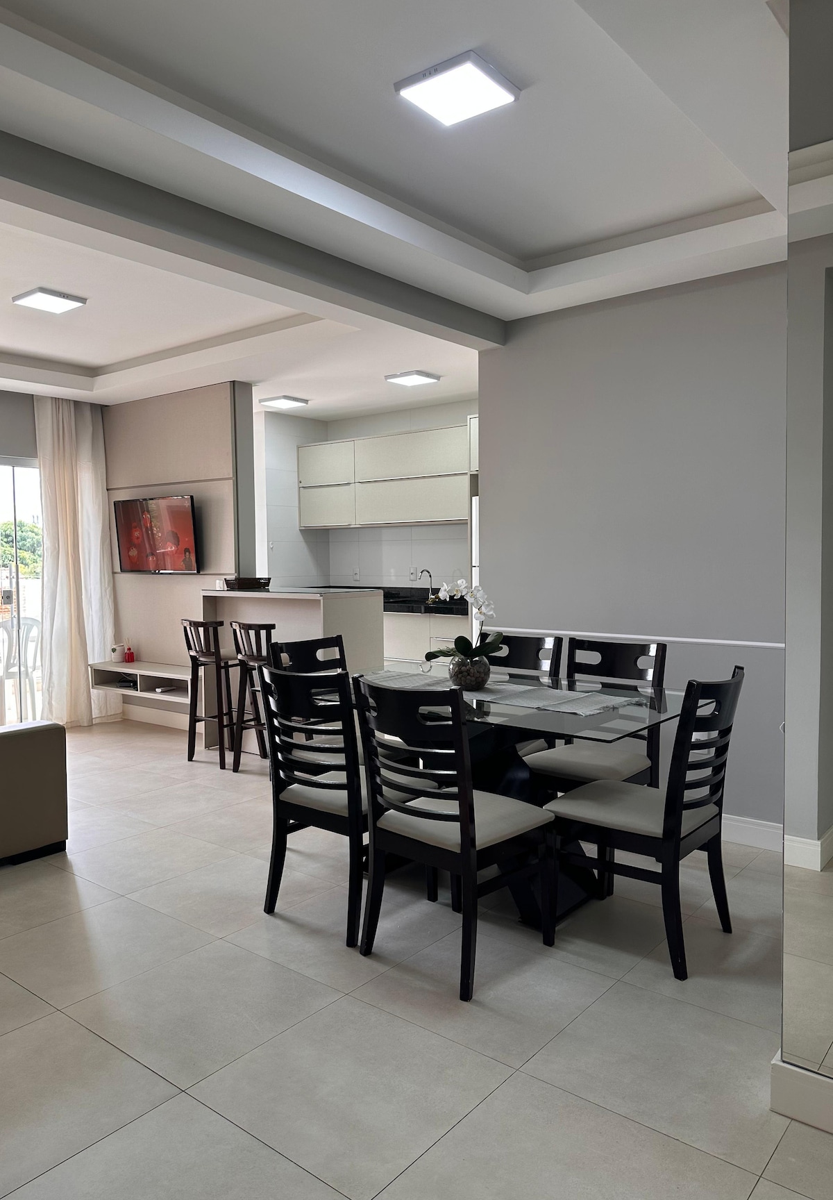 Apartamento de alto padrão localizado no Centro de Itapema, a aproximadamente 100 metros da praia e do calçadão. O imóvel possui 3 suítes climatizadas, acomodando confortavelmente até 6 hóspedes. Todos os quartos contam com camas confortáveis e TV. • 3 suítes com ar-condicionado • 3 camas queen e 2 camas de solteiro • sala ampla com TV • cozinha completa com ilha • água quente a gás • área de serviço • 3 vagas de garagem AO LADO DO MADERO E POSTO DE COMBUSTIVÉL. FRENTE A RUA PRAIA 161