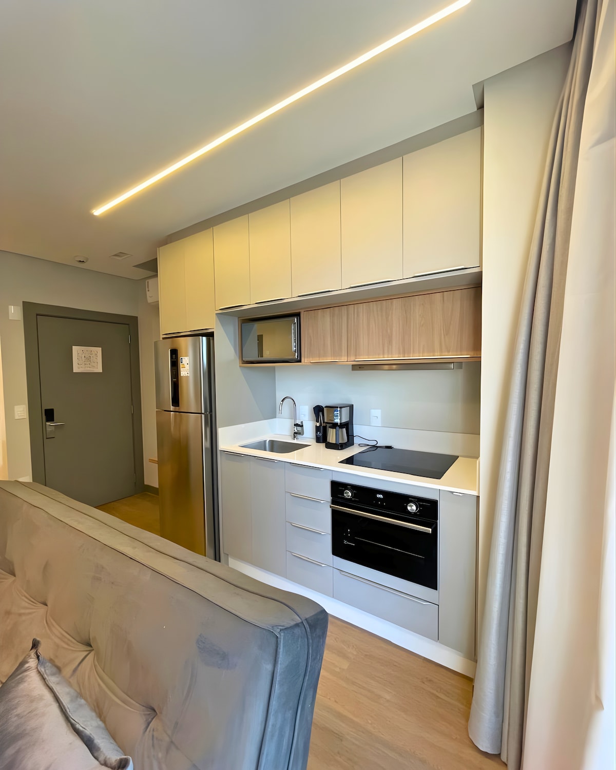 Cada detalhe do apto foi pensado para transmitir a leveza, elegância e aconchego do mar Mediterrâneo. Tons suaves, texturas naturais e iluminação planejada criam o ambiente ideal para dias inesquecíveis. 2 suítes, com ar condicionado e TV 4K. Sala de jantar e estar com TV 65". Cozinha equipada para jantares memoráveis. Sacada gourmet com churrasqueira e vista para o mar. No Rooftop, Piscinas aquecidas, perfeitas para banhos relaxantes até mesmo no inverno e academia totalmente equipada.