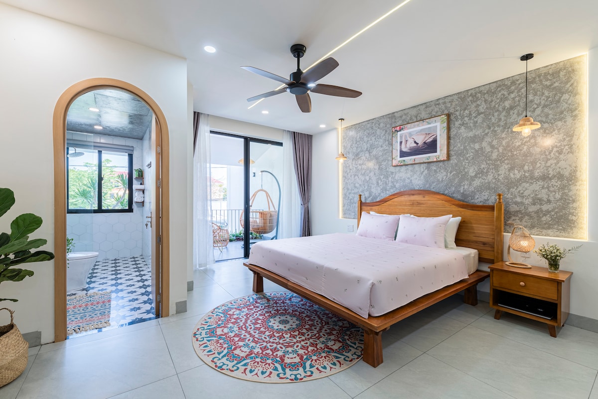 Seoska kuća uz rijeku Anicca je privatni bungalov s 1 spavaćom sobom u zelenom selu u Hoi Anu. Kuća je okružena prijateljskim okruženjem u prirodi. Uličice uz rijeku, kroz pirinčana polja i bašte sa povrćem i oko sela idealne su za vožnju biciklom. Kuća nudi romantičan ambijent za 2 osobe sa bračnim krevetom, kupatilom, kuhinjom i zelenom baštom. Do Hoi Drevnog grada ili plaže taksijem ili električnim automobilima ima samo 10 minuta vožnje taksijem ili električnim automobilom.