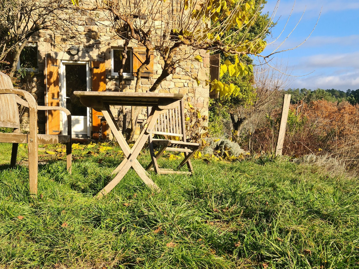 Blaženo mirno i lepo utočište. Renovirana seoska kućica je mala dvospratna kuća savršena za 2 osobe, na veličanstvenom imanju od 94 hektara šume kestena, uzvišenom iskustvu za ljubitelje prirode, koji žele da pobegnu od vreve i vreve, predivnih pješačkih staza, veličanstvenih pogleda. Prirodni mali bazen u sklopu objekta, ali postoji uzvišeno mjesto za plivanje na 9 km. Spavaća soba i grijalica na drva na spratu, kupatilo, odvojeni toalet i otvorena kuhinja u prizemlju. Privatna terasa.