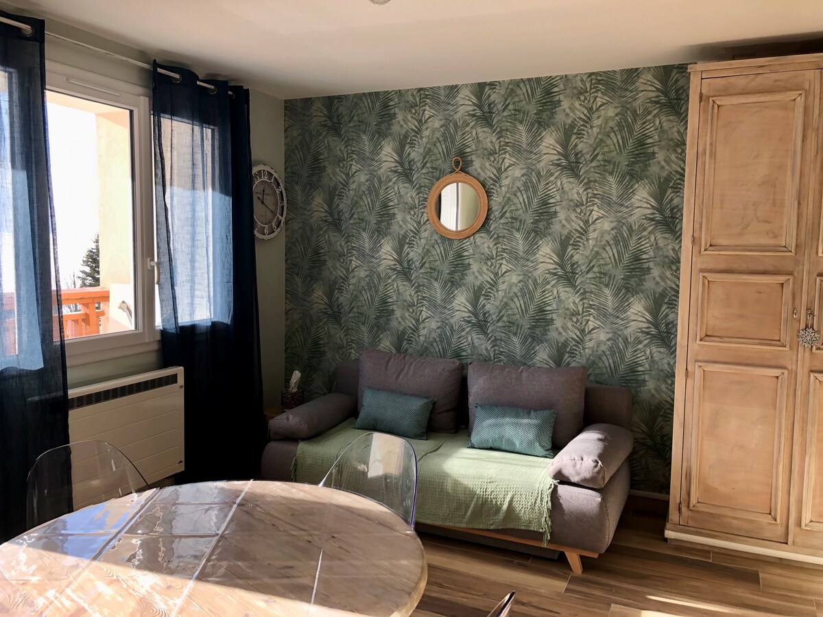 Studio površine 28 m2 s pogledom na padine,skijanje. ESF,ski lif, prodavnice u susedstvu. Stan je potpuno opremljen:Wi-Fi, veliki TV, hi-fi, DVD plejer, raclette i fondue uređaji, senseo,mašina za sudove, mini rerna, kuvalo za vodu, toster. Na raspolaganju su proizvodi za domaćinstvo,ulje, sirće, šećer, so, biber. Čaršavi se mogu iznajmiti:10 evra po osobi. Besplatan prevoz do odmarališta u letnjoj, zimskoj sezoni:zaustavite se na 50 metara . sigurnosni depozit:100 eura