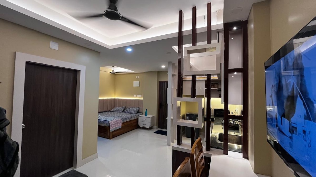 Opustite se u Mirovom gnijezdu, svijetlom i udobnom stanu 1BHK koji je osmišljen kako bi vaš boravak učinio udobnim, mirnim i povoljnim. Savršen za kraće ili duže boravke, osmišljen je da se osjeća kao kod kuće. Smešten na samo 1 km od čuvenog hrama Šri Jaganat i oko 2 km od plaže i svetionika, savršeno je mesto za miran boravak, bilo da dolazite zbog vere ili odmora.