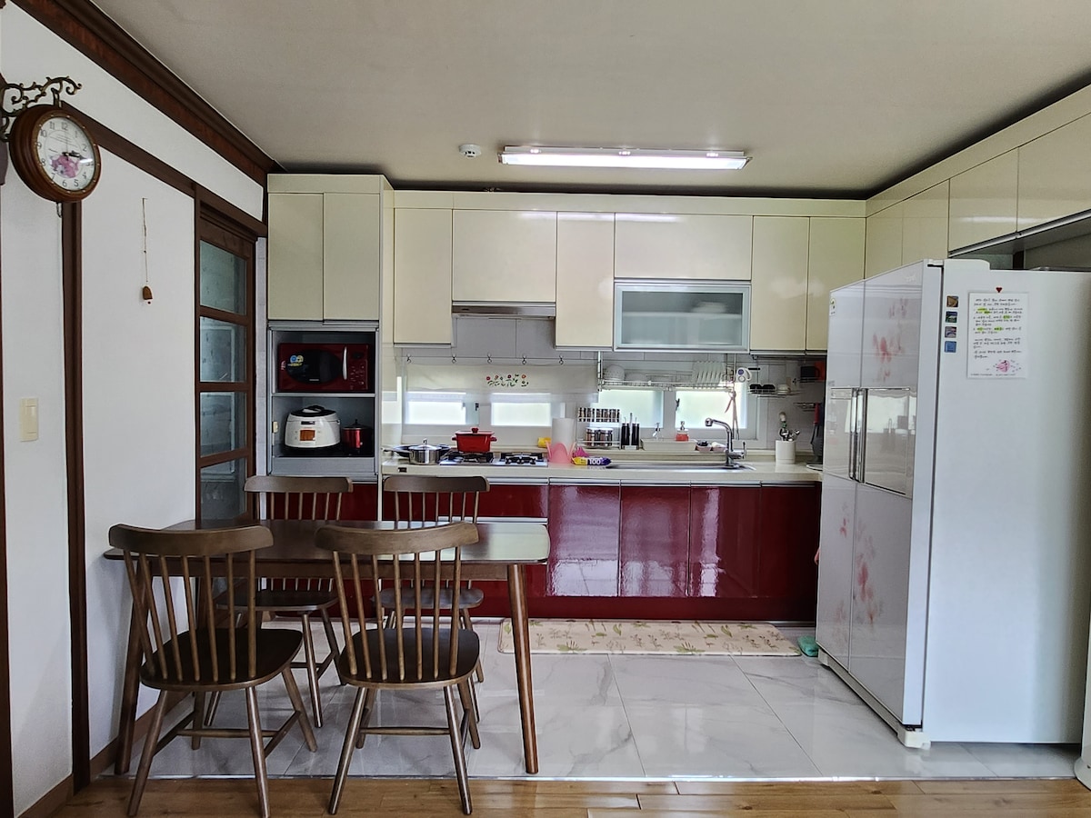명촌 갤러리를 찾아주시어 감사합니다. 저희 부부가 한 지붕아래 살고있지만 게스트분과 마주칠 수 없는 편백나무 별채구조입니다. 단독으로 황토침실 주방 욕실 화장실 사우나 선룸 바베큐장 뒷마당 이 모두가 게스트단독 공간으로 되어있습니다. 넓은 잔디정원 마당에서 시골풍경과 순수황토집에 편백나무향을 즐기세요 *체크인오후3시 *체크아웃 오전11시 *무료픽업(예약필수) 경주시외버스터미널에서 숙소까지 *기본예약인원2명 추가인원 2명 24개월이상 아기의경우 추가금액 2만원 초등학생이후는 성인과 동일 3만원 (현장에서 결제) *바베큐하실분 미리예약하시면 숯불 된장찌게 밥 밑반찬 가위 집게 제공 따스한 계절 텃밭에 야채따기 체험 (무료제공) *바비큐장이용료 3만원 *전기차 충전요금 (7천원) *TV유료체널 요금청구 *황토방 아궁이 군불지피기, 불멍무료체험가능(예약필수) *조식무료(예약필수) 빵 음료 과일 ~09시전 *생수 2병 제공 등록번호 발급지역 경주시 허가유형 농어촌민박사업