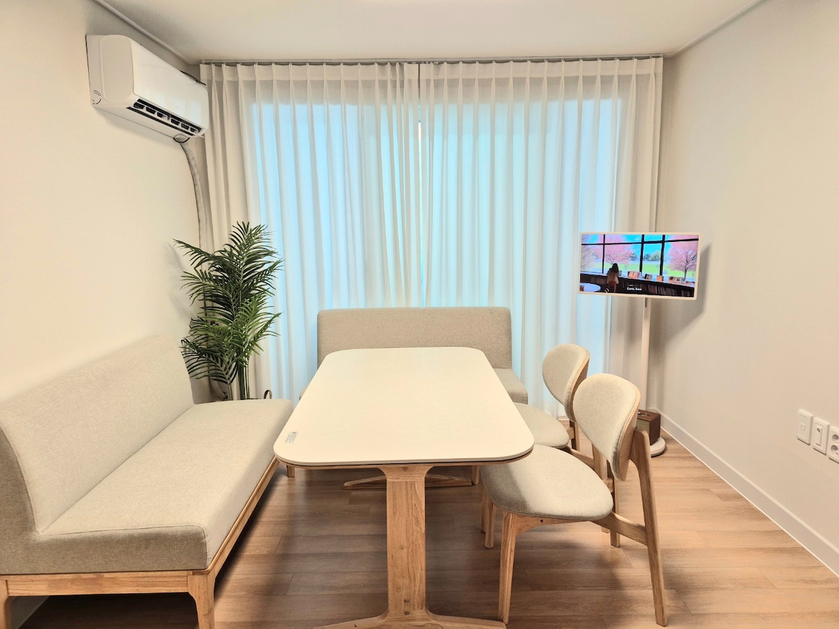 Ye-stay, koji vam ostavlja pozitivno sećanje, je kuća na „prvom spratu“ koja se nalazi u blizini stanice Banwoldang na liniji 2 metroa u Daeguu.(Korišćenje drugog sprata i zasebne kapije) 🎁 Toalet je preuređen Opremljeno električnim ćebetom 🏠za zimu (velika zavesa za zamračivanje u sobi – unutrašnji vazduh je topao/dobar za dobar san) 🎬, 🍿 Opremljen sa dve spavaće sobe i prostorijom sa projektorom za projekcije gde možete gledati filmove i ostalo 📺️ Opremljeno televizorima koji mogu da gledaju preko 900 LG btv kanala i Samsung Internet TV kanala Podelite uspomene na udobnom mestu sa ⛱️voljenima *.❅ Sve u svemu, to je prostor u kojem se sve generacije mogu opustiti u stilu bijele i drvene boje i senzibiliteta generacije MZ ovih dana. Provedite vreme zajedno na putovanju u Daegu i stvorite pozitivne uspomene koje nikada nećete zaboraviti!