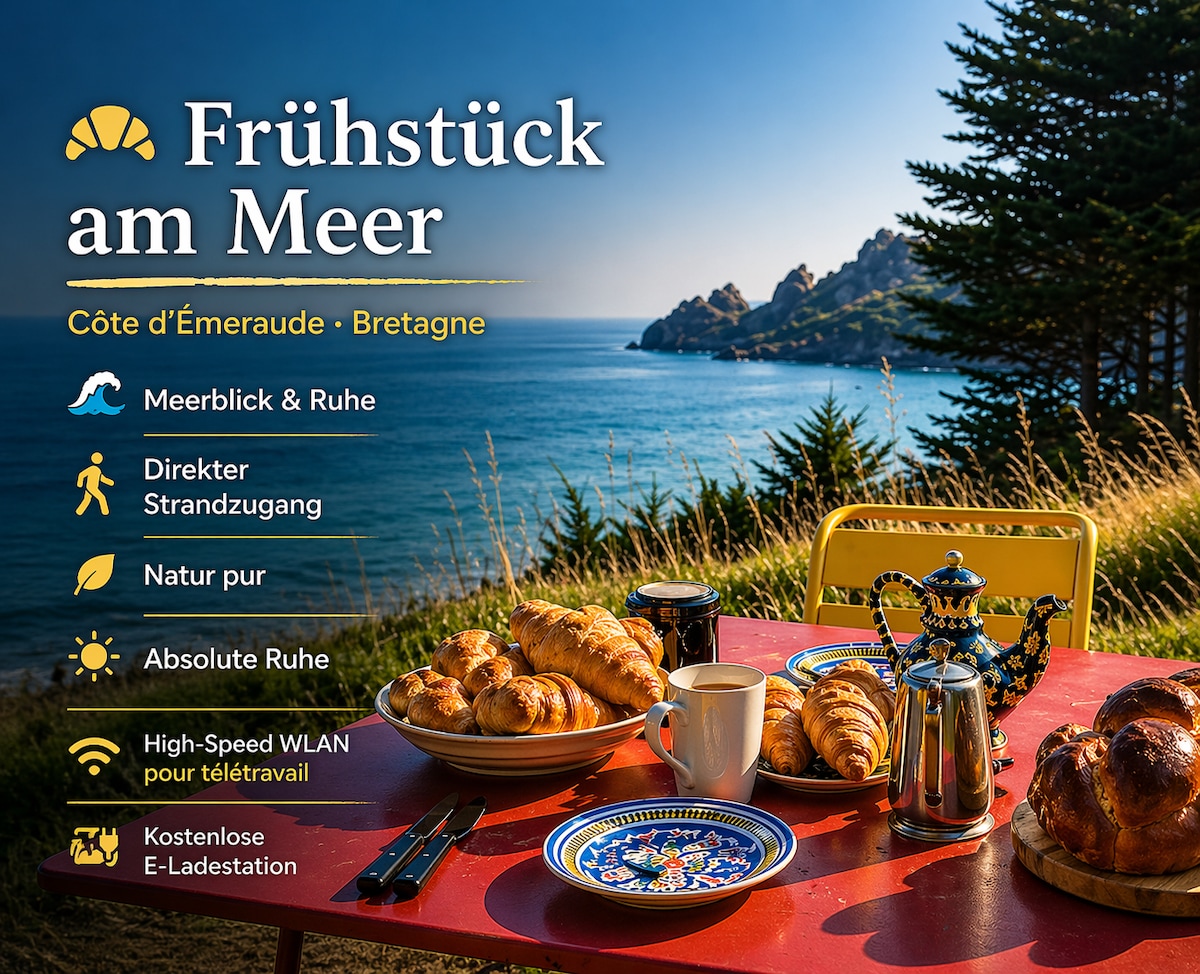 🌊 Pogled na more spreda • direktan pristup plaži 🌿 Privatno imanje RozVen • tiha, netaknuta priroda 🇩🇪 Direktno uz more • Neprekidan pogled na more • Mirno 💼 Rad na daljinu • Optička mreža > 1 Gb/s 🔌 Besplatno punjenje električnog automobila 🍽 Coquillage (3★ Michelin – Roellinger) · 10 min. 🦪 Kankalske ostrige · Morska hrana 🏡 Vila de Kolet – samostalna kuća 🌳 Privatni park od 4 hektara okrenut prema okeanu 🛏 3 spavaće sobe • 2 do 6 osoba 🌅 Terasa sa pogledom na more