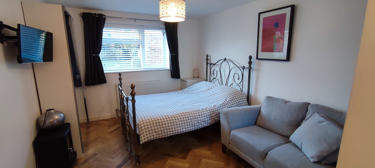 Dobro došli u moju jednosobnu spavaću sobu koja je istovremeno uređena u prizemlju. Spavaća soba sa bračnim krevetom, WC šolja i otvoreno kupatilo i prostor za čaj su samo za vas. Idealno smještena u Marstonu, kuća se nalazi u mirnom području i pruža jednostavan pristup srcu Oksforda, bolnice Džona Redklifa. Dostupno je jedno besplatno parkiranje van puta. Kućni red: Zapremina mora biti smanjena između 22.30 i 7:00 kako bi se smanjile smetnje drugima. Cijevi za vodu mogu biti glasne. Strogo zabranjeno za žurku ili događaj.