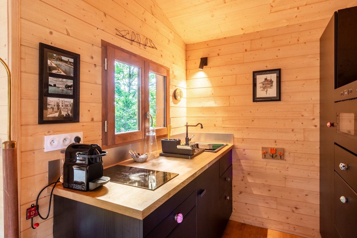 Koliba Fun-nid, smeštena na visini od 2 m, nalazi se u srcu privatnog parka od 2 hektara, površine 33 m² + 15 m² potkrovlja, pa može da ugosti do 5 osoba. Klimatizovan, ima kupatilo sa WC-om, spavaću sobu i 3 kreveta na međuspratu, opremljenu kuhinju i prostor za sjedenje. Pristup bazenu 9×3 je uključen u cenu smeštaja. Promena ambijenta, a ipak blizu grada. Sa terase možete da posmatrate ptice, veverice…