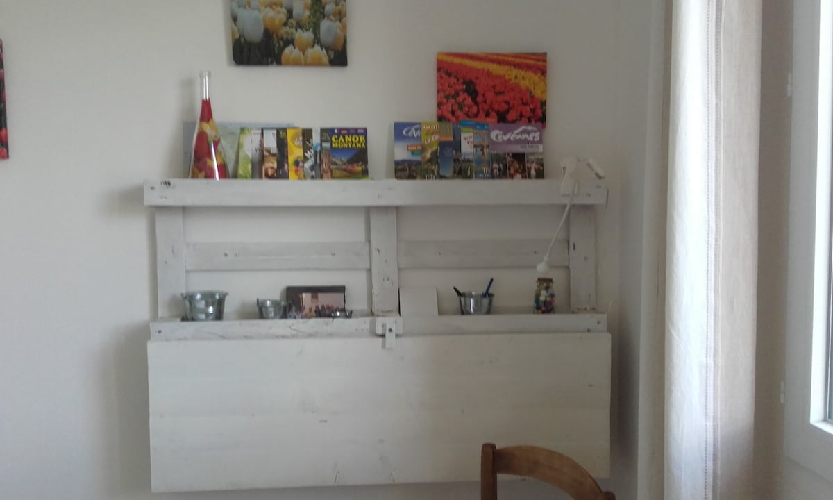 Dođite i napunite baterije u studiju za dvije osobe u blizini Uzesa, udaljenog 3 km. Čajna kuhinja, frižider, kupatilo sa mikrotalasnom rernom,TV. Tuš kabina, umivaonik, WC šolja , terasa i privatni ulaz za doručak ili večeri. Mirno okruženje, na ivici šume Saint-Maximin za šetnje i šetnje. Svi sadržaji udaljeni su 1,5 km. Razgledanje: Pont du Gard, Nîmes, Avignon, Arles, Montpellier, plaže Mediterana... Govorimo francuski, engleski, Nederlands. Wi-Fi