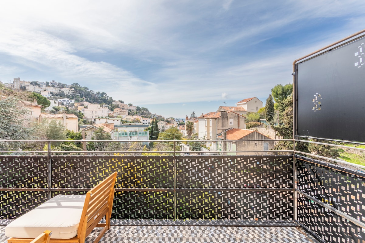 Pobjegnite na plavu obalu koja oduzima dah i doživite Provansu u studio apartmanu koji su pažljivo dizajnirali vlasnici arhitekte. Probudite se uz zadivljujući pogled na brdo i more sa svoje privatne terase i uživajte u svim modernim sadržajima. Prošetajte do peščane plaže i istražite uvale besplatnim morskim kajakom. Pogodno je smeštena na 10 minuta od lokalne železničke stanice i na 25 minuta od aerodroma Marselj sa besplatnim parkingom. Na Plavoj obali Provanse čeka vas nezaboravna avantura!