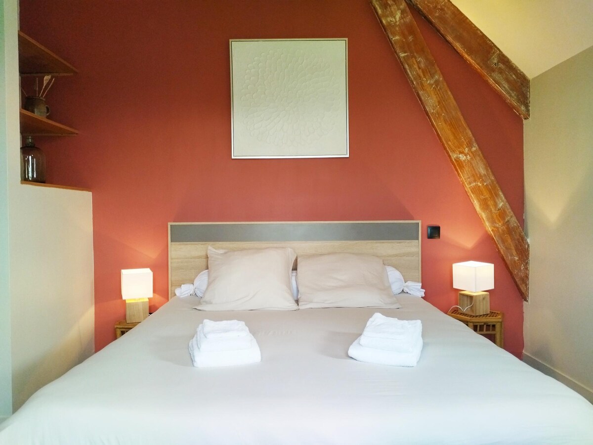Oduševićete se elegantnim uređenjem ovog šarmantnog smještaja. Kuća se nalazi na sat vremena od Renes Angersa, gdje se nalazi Le Mans. Sat i po od Chateaux de la Loire, Saint Malo i Mont Saint Michel. Od kuće možete prošetati do Starog Lavala ili prošetati stazom za vuču. Takođe stavljam na raspolaganje bicikle