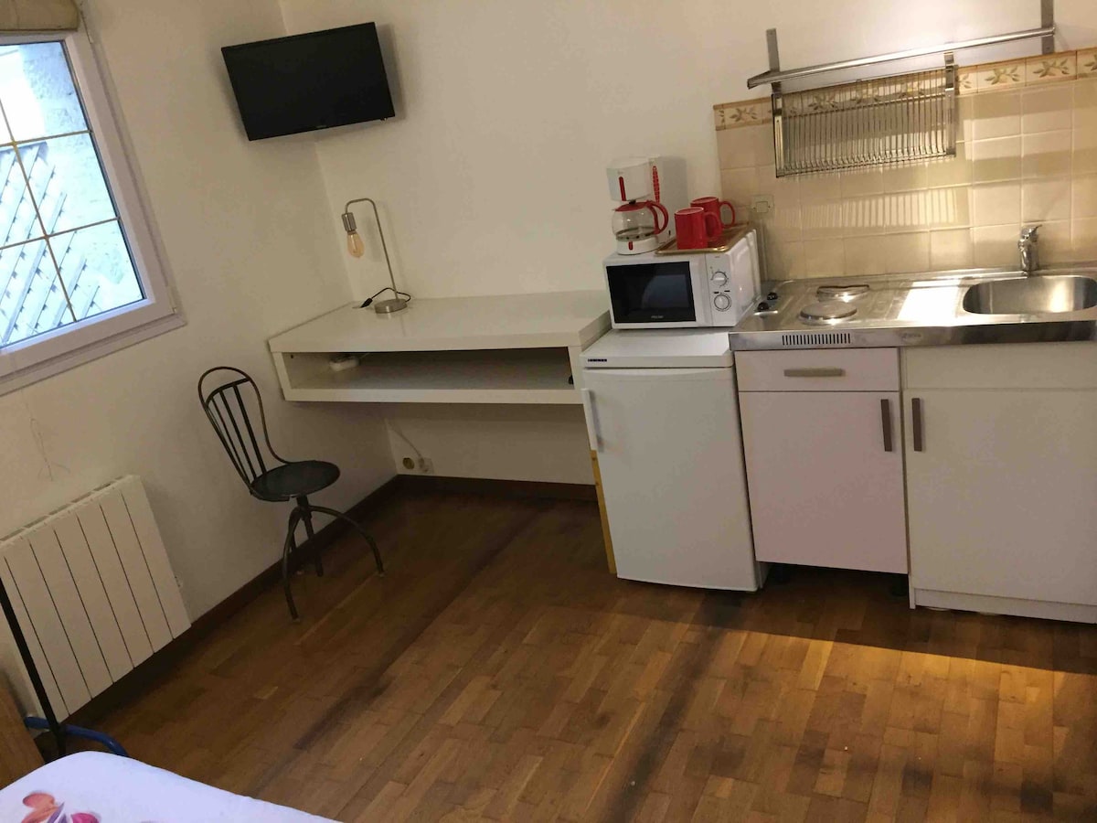 Poput hotelske sobe, ali sa stvarno opremljenom kuhinjom! Vrlo lijep studio apartman u potpunosti renoviran u maju 2024. godine, pogodan za jednu ili dvije osobe. Ima kupatilo (peškiri su obezbijeđeni) , kao i glavnu sobu sa pravim novim kaučem na razvlačenje (dušek od 22 cm + posteljina) Nalazi se na 8 minuta hoda od metroa 4 i RER B koji vode do centra Pariza za oko 30 minuta. Pekara, supermarket, 2 min. od smještaja.