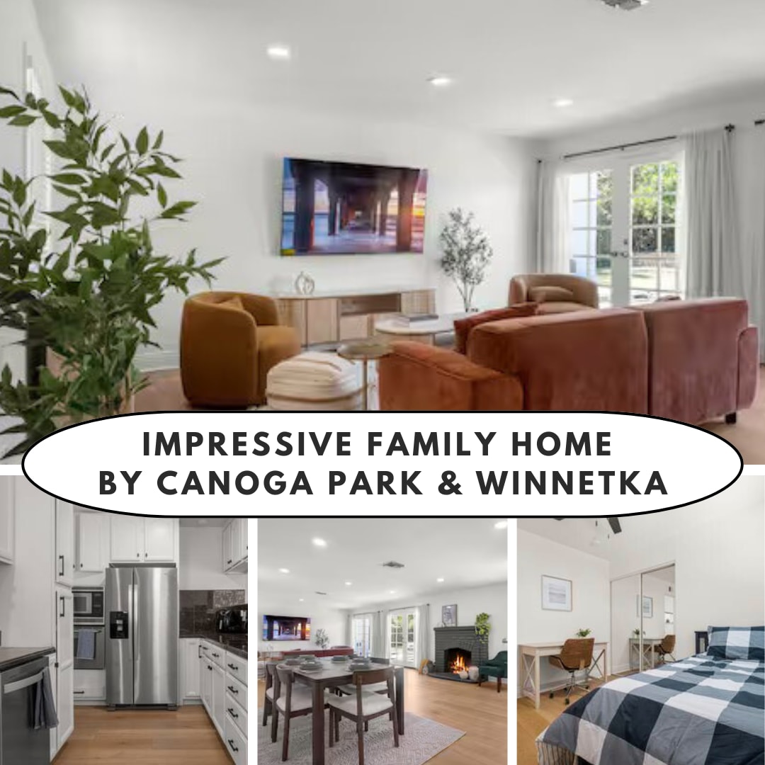 Velika prostrana(2000m2) dvospratna moderna i svijetla kuća. Nedavno renoviran sa digitalnom bravom, King master, 2 bračna kreveta, 1 krevet na sprat, 2 kupatila/kada, formalni trpezarijski sto, kompletna kuhinja, centralna klima/grejanje, mašina za pranje/sušenje veša, HD Smart TV u svakoj sobi sa besplatnim Netflix-om, aplikacijama i Wi-Fi mrežom. Sedišta na otvorenom, roštilj, ognjište i još mnogo toga! U blizini su prodavnice, restorani, tržni centri, CSUN i glavni autoputevi. Kratka vožnja do Holivuda, zabavnih parkova i plaža. Pas je u redu sa NAKNADOM ZA KUĆNE LJUBIMCE.