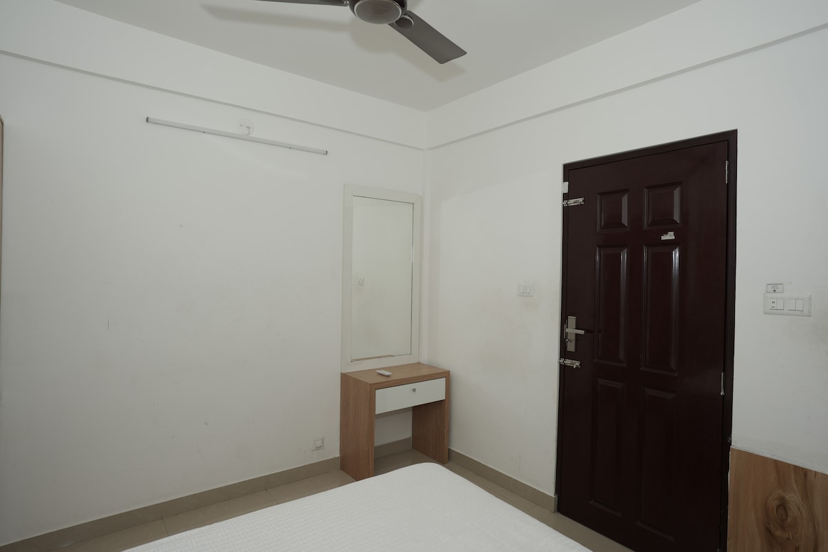 Dovedite cijelu porodicu u ovaj sjajan smještaj. 2 BHK prostrana i dobro provjetrena, okrenuta prema istoku, namješteni stan sa klima-uređajem u obje spavaće sobe, kupatilo sa gejzirom, televizorom, frižiderom, RO vodom, električnim kuvalom, mašinom za veš , Wi-Fi i modularnom kuhinjom sa plinskim šporetom sa priborom. Hram Guruvayoor Sree Krishna i Mammiyur Siva udaljen je samo 200 m od stana. Dobri vegetarijanski restorani i supermarketi su dostupni u blizini stana. Željeznička stanica je udaljena svega 800 metara.